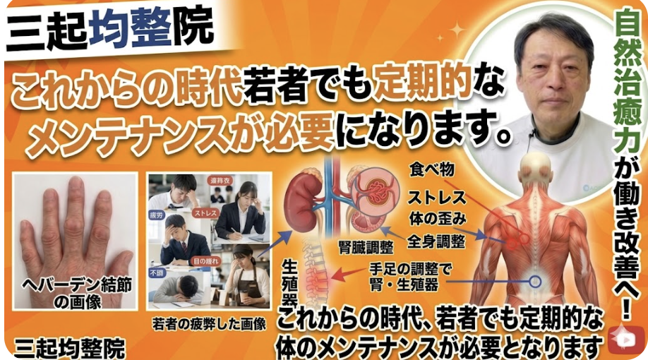 特に現代人にとっては、**整体などで体を整える「外からのケア」**も非常に重要になってきています。