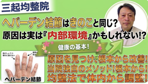 対応症状こんにちは。三起均整院です。今日も健康情報をお届けしていきたいと思います。 今回は「メノポハンド・ヘバーデン結節の治し方」というテーマです。 まず、メノポハンドとは何か。これは更年期の前後に、指の痛み・腫れ・違和感などが...
