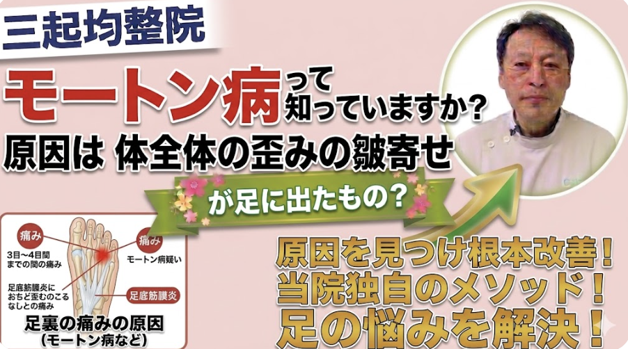 特にモートン病では、体の歪みの影響が非常に大きいと考えています。